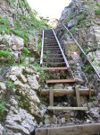 Bald kommen wir zur Wegzweigung „Normalweg“ oder „Stiege“ nur für Geübte, was viele MitwanderInnen vor uns zum Grübeln bringt. Die „Stiege“ entpuppt sich als Klettersteig A, mit wenigen Seilsicherungen und einer Leiter, die allen Trittsicheren und Schwindelfreien keine Probleme bereiten sollten.