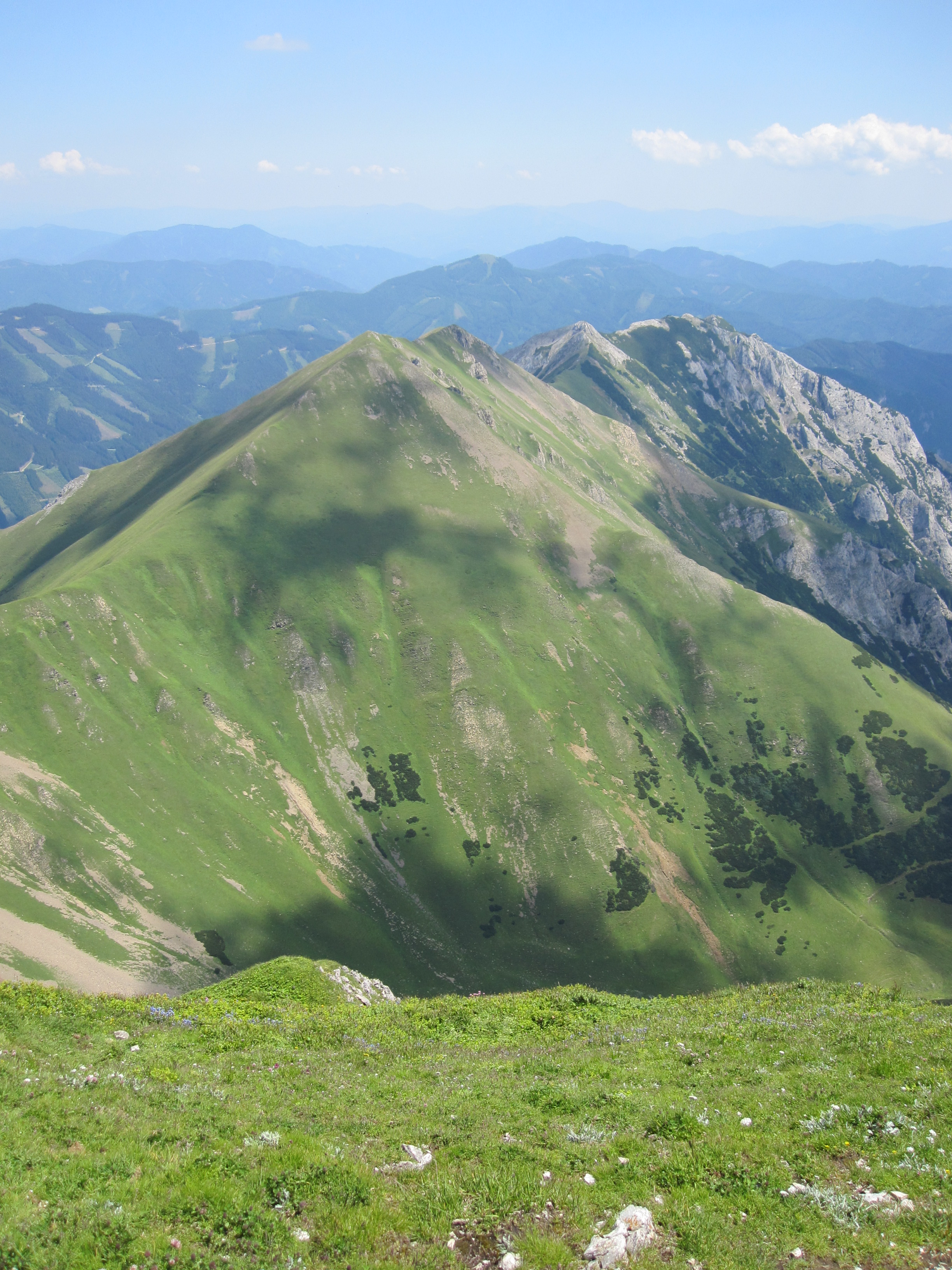 Der Aufstieg am (gefühlt) heißesten Tag im Jahr wurde belohnt mit Fernsicht auf Dachstein und Grimming.