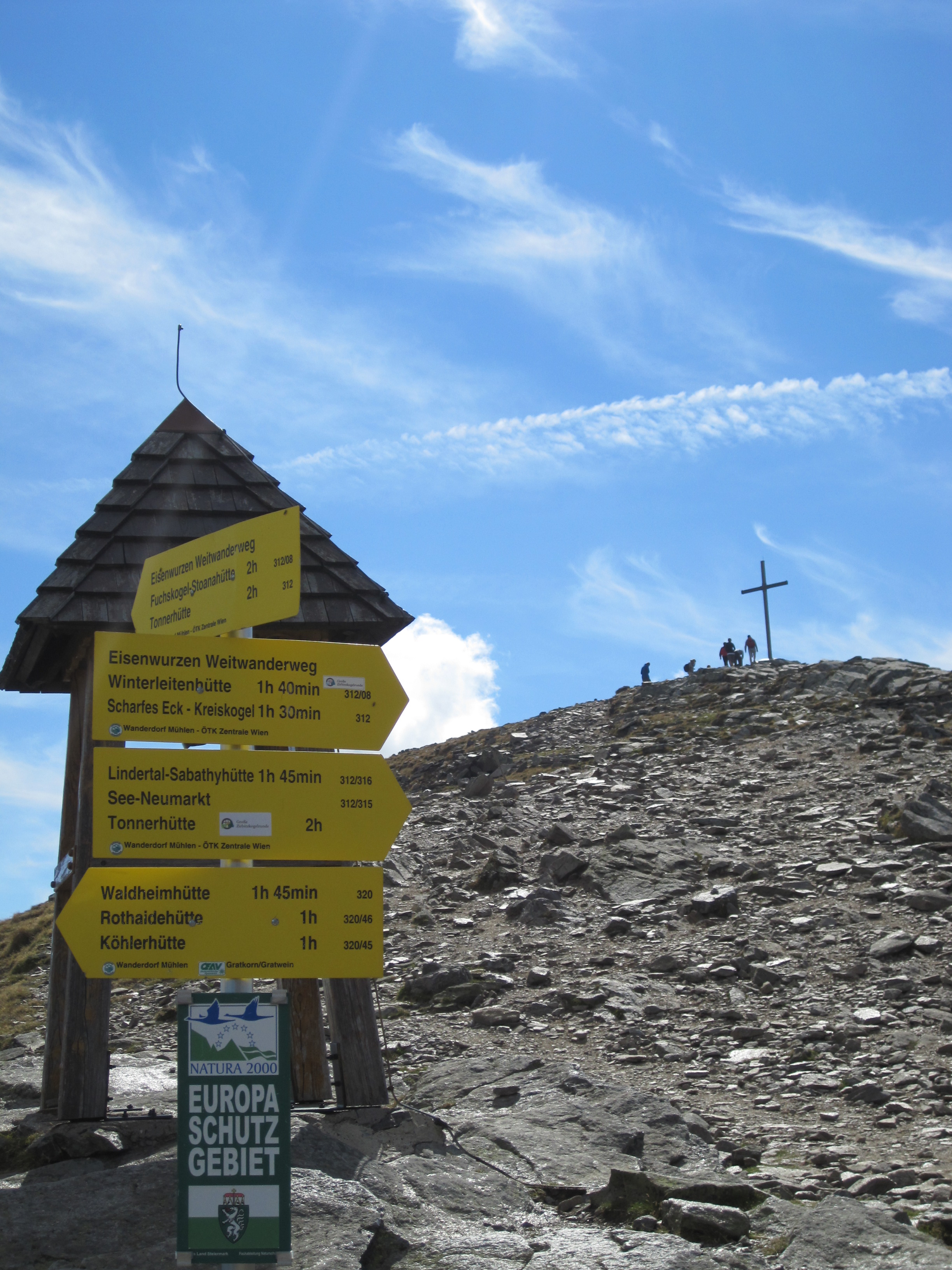 Als nächstes Ziel soll es der Zirbitzkogel ein, und zwar nicht über die bekannte Route von der Sabathyhütte, sondern von der Waldheimhütte (1614 m) über das Türkenkreuz, die Köhlerhütte (1855 m) und den Lavantsee (2053 m) zum Gipfel (2396 m).