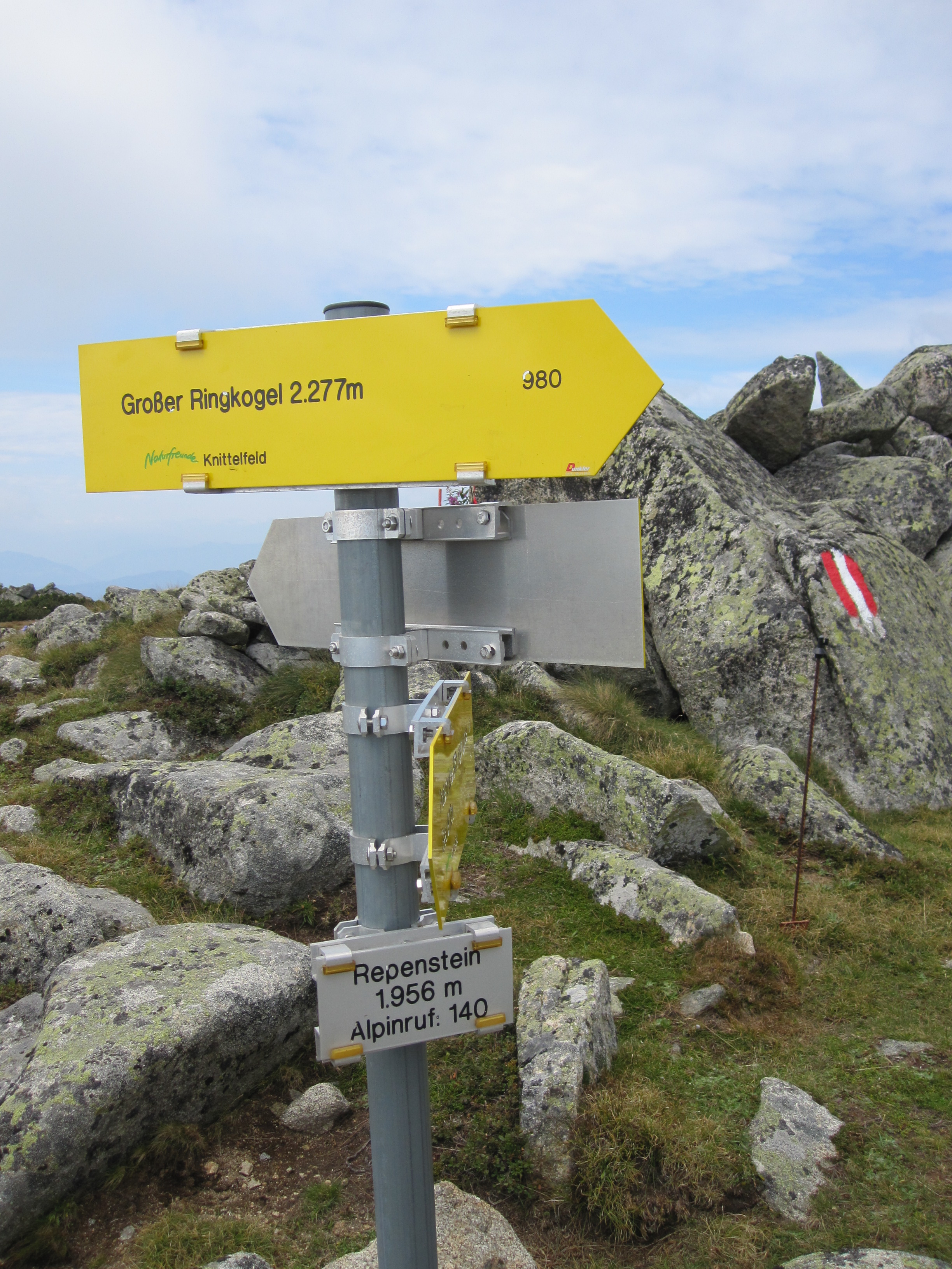 Bald wird der Wald dünner und nach einem umzäunten Forstgebiet für wissenschaftliche Zwecke hört die Waldzone auf und wir gehen über tundrenartige Wiesen geaäumt von Latschen und Felsblöcken. Nach 2 Stunden Gehzeit erreichen wir den ersten Gipfel, den Repenstein (1956 m). Hier können wir bereits den Kleinen und Großen Ringkogel sehen. In nördlicher Richtung zieht sich der Weg dann über Wiesen zum Kleinen Ringkogel (2110 m), den wir in 30 Minuten erreichen. Der Gipfel ist nur durch ein Steinmandl gekennzeichnet. Weiter geht es am Kamm in nordwestlicher Richtung auf den Großen Ringkogel (2277 m). Wir erreichen das Gipfelkreuz in wiederum 30 Minuten. Von hier kann man bei klarem Wetter einen feinen Blick auf Seckauer Zinken, Hochreichhart und Geierhaupt. Das weite Hochplateau am Großen Ringkogel lädt zum längeren Verweilen ein.