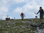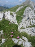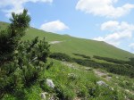 Von hier geht es recht steil durch den Wald auf den Lamingsattel (1677 m). Dann öffnet sich das Gelände, wir haben einen großartigesn Blick auf die Grießmauer. Wir steigen nun über das Wildfeld schräg in Richtung Gipfel und lassen die Latschen links hinter uns. Bevor wir gerade aus weiter Richtung Großwand gehen, führt ein ummarkierter, felsiger Steig zum Hochturm-Gipfel (2081 m).