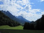 Endlich wieder Sonne! Wir starten beim Seestüberl am Hintersteiner See, 892 m, und machen uns auf den Weg, den unter Naturschutz stehenden See auf der Südseite zu umrunden. Wir gehen also 40 Minuten in einem leichten Auf und Ab am Ufer entlang und beobachten die Fische im kristallklaren Wasser. Wir erreichen die Pension Maier, von da an geht es recht steil auf einer Forststraße bis zur Walleralm. Aufgrund des breiten, leichten Weges sind sehr viele WandererInnen und MountainbikerInnen unterwegs.
