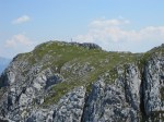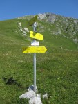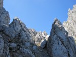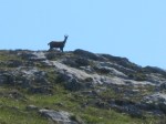 Nach 1:15 Std. und einem leichten Abstieg erreichen wir den Zlattensattel, 1746 m. Dort geht nach rechts ein Weg zum Feistringstein ab, „nur für Geübte“. Von da an gehen wir auf der Rückseite des Felswand, der Mitteralm im leichten Auf und Ab zum Einstieg des Klettersteiges. Wenn man früh genug dran ist, kann man Gämsen beobachten, wie sie einen selbst beobachten.