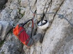 Eine halbe Stunde später erreichen wir den Einstieg des Klettersteigs. Auf einem Schild wird gewarnt, dass „die Ersteigung des Gipfels sehr schwierig ist und einer großer Bergerfahrung gefordert.“ Wenn man das nicht mitbringt, soll man von hier nur den Blick auf den Gipfel genießen.
