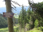 Startpunkt ist die evangelische Kirche in Ramsau Ort. Hinter der Kirche steigen wir der Toleranzweg neben dem Schilift über einen leichten Hang hinauf bis wir wieder kurz auf einer asphaltierten Straße (Mayerhofweg) zu einem Bauernhof gehen. Zwischen den hinteren Wirtschaftsgebäuden führt dann der Toleranzweg (Schild) über eine kleine Weide in den Wald.