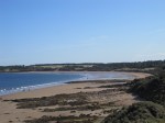 Der Strand ist geschätzte 3 Kilometer lang, wir marschieren an den vorgelagerten Dünen etwa 2 Kilometer entlang und wenden uns dann nach Südwesten, dem Landesinneren zu und gehen über die Sands in Richtung Süden zum dortigen Wald. Dort verläuft ein Weg, wen wir am Waldrand nach Osten folgen. Nach ca. 1 Kilometer treffen wir wieder auf den John Muir Weg.