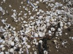 Diesmal treten wir aus der Tür unseres Quartiers am Hawes Pier und schon sind wir am John Muir Weg. Wir marschieren durch den riesigen Park, den das Dalmeny House umgibt. Meist wird der Weg sehr nach am Meer durch Wald geführt, ein Abstecher auf die Sandstrände ist fast jederzeit möglich. Und die sind ein wahres Paradies für Muschelsucher.