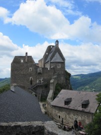 Nach einer Einkehr in der Burgtaverne (Eintritt!) und ausgiebiger Burgbesichtigung machen wir uns zu den letzten 4 km auf: Zuerst steil durch den Herrenwald bergab, z.T. auf der Zufahrtsstraße zur Burg, dann links abzweigend durch den Wald in Richtung Aggsbach Dorf. Leider müssen wir noch einmal 100 Höhenmeter über den Hartl, dann aber führt der Weg wieder inmitten Kulturlandschaft nach Aggsbach Dorf, wo die Etappe bei der Kartause endet.