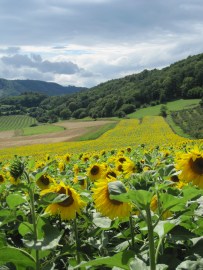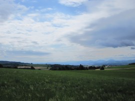 Wieder haben wir einige Probleme auf dem richtigen Weg aus der Ortschaft hinauszufinden. Wir halten uns westwärts und treffen am Ortsrand wieder auf die Markierungen des Welterbesteigs.